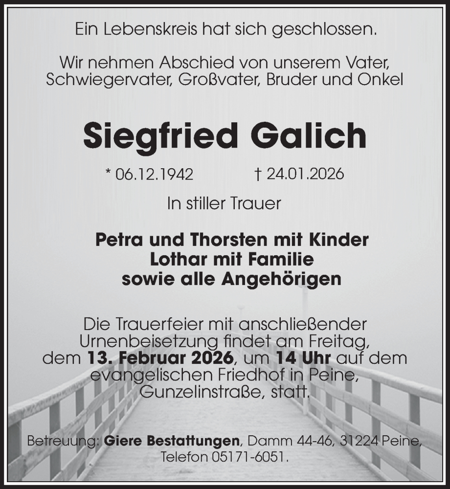 Hier finden Sie alle Traueranzeigen aus der Zeitung, die bisher für Siegfried Galich erschienen sind. Weitere Traueranzeigen, die in der Zeitung erscheinen, werden hier ebenfalls aufgelistet