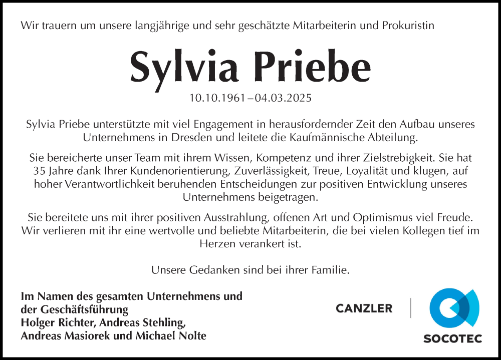 Hier finden Sie alle Traueranzeigen aus der Zeitung, die bisher für Sylvia Priebe erschienen sind. Weitere Traueranzeigen, die in der Zeitung erscheinen, werden hier ebenfalls aufgelistet