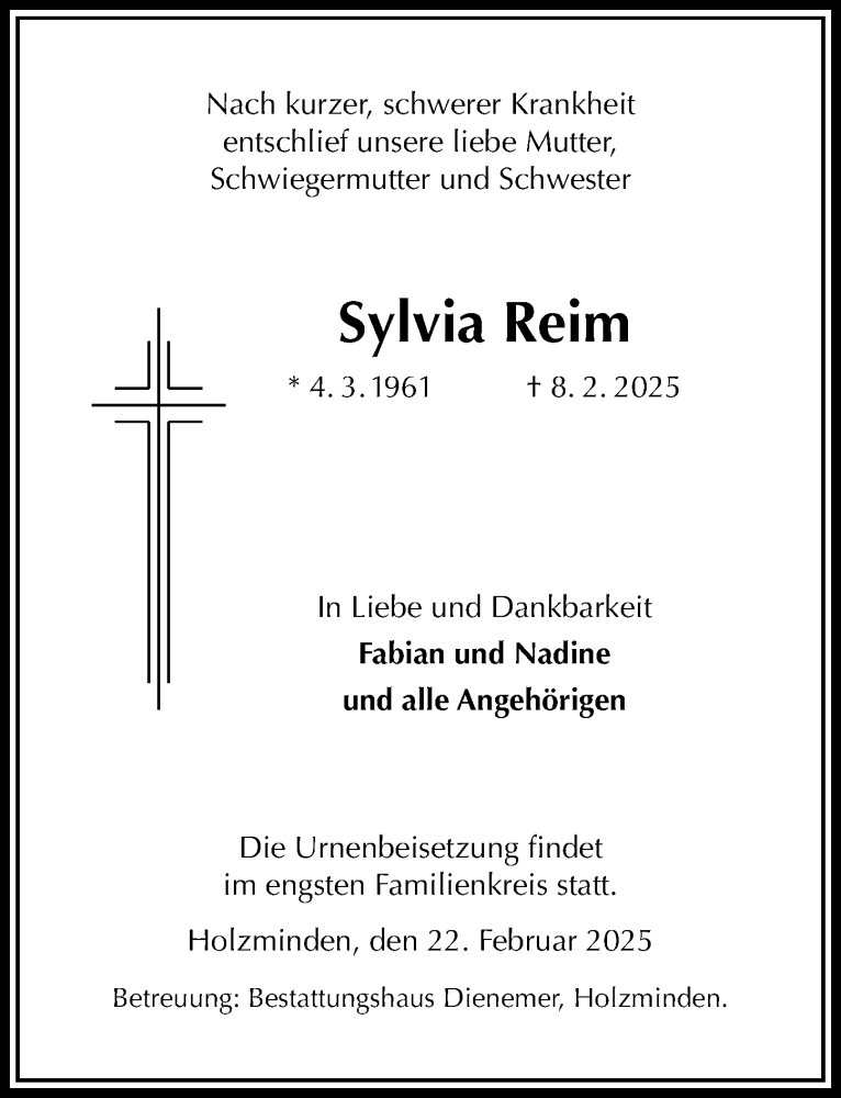Hier finden Sie alle Traueranzeigen aus der Zeitung, die bisher für Sylvia Reim erschienen sind. Weitere Traueranzeigen, die in der Zeitung erscheinen, werden hier ebenfalls aufgelistet