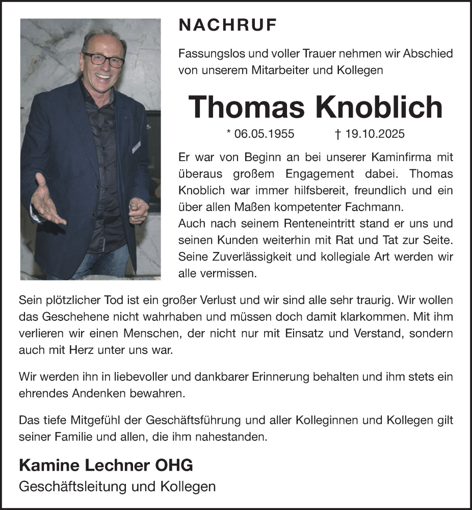 Hier finden Sie alle Traueranzeigen aus der Zeitung, die bisher für Thomas Knoblich erschienen sind. Weitere Traueranzeigen, die in der Zeitung erscheinen, werden hier ebenfalls aufgelistet