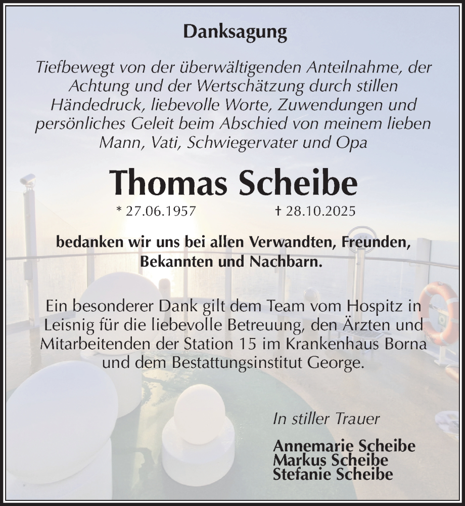 Hier finden Sie alle Traueranzeigen aus der Zeitung, die bisher für Thomas Scheibe erschienen sind. Weitere Traueranzeigen, die in der Zeitung erscheinen, werden hier ebenfalls aufgelistet