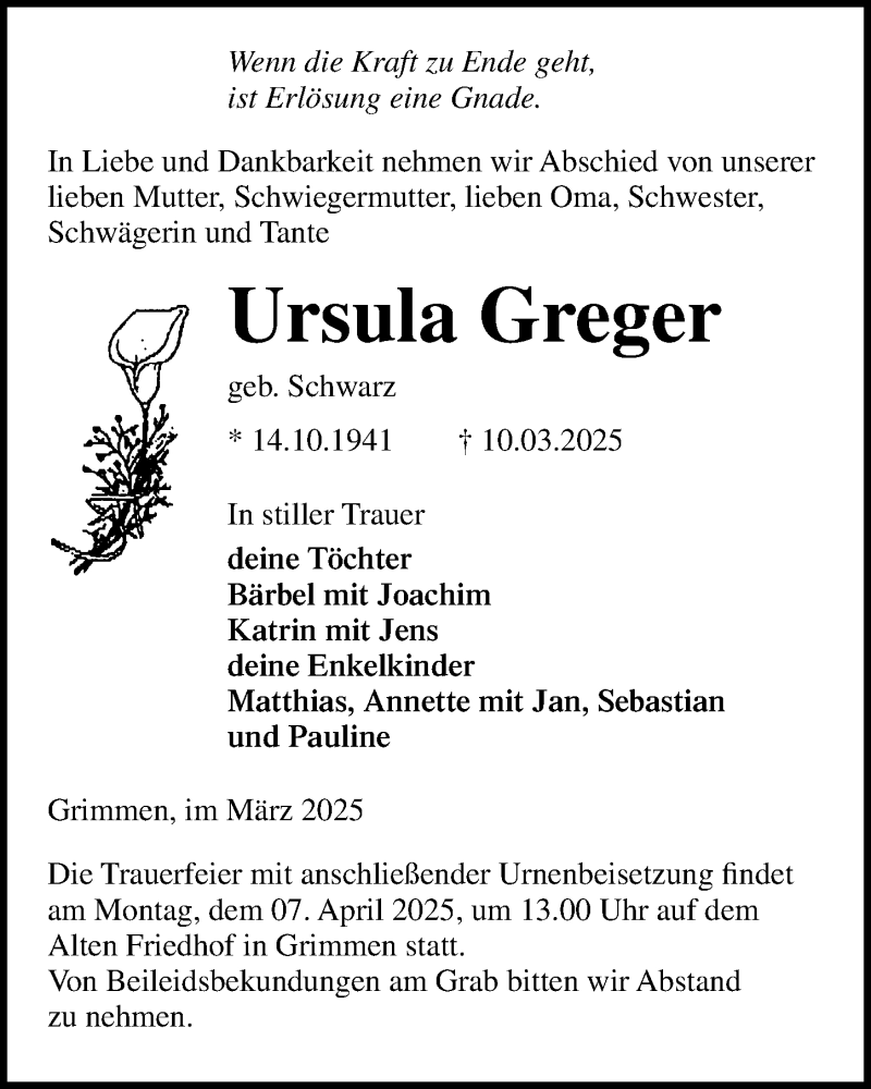Hier finden Sie alle Traueranzeigen aus der Zeitung, die bisher für Ursula Greger erschienen sind. Weitere Traueranzeigen, die in der Zeitung erscheinen, werden hier ebenfalls aufgelistet
