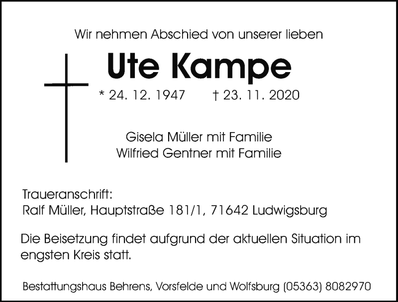 Hier finden Sie alle Traueranzeigen aus der Zeitung, die bisher für Ute Kampe erschienen sind. Weitere Traueranzeigen, die in der Zeitung erscheinen, werden hier ebenfalls aufgelistet