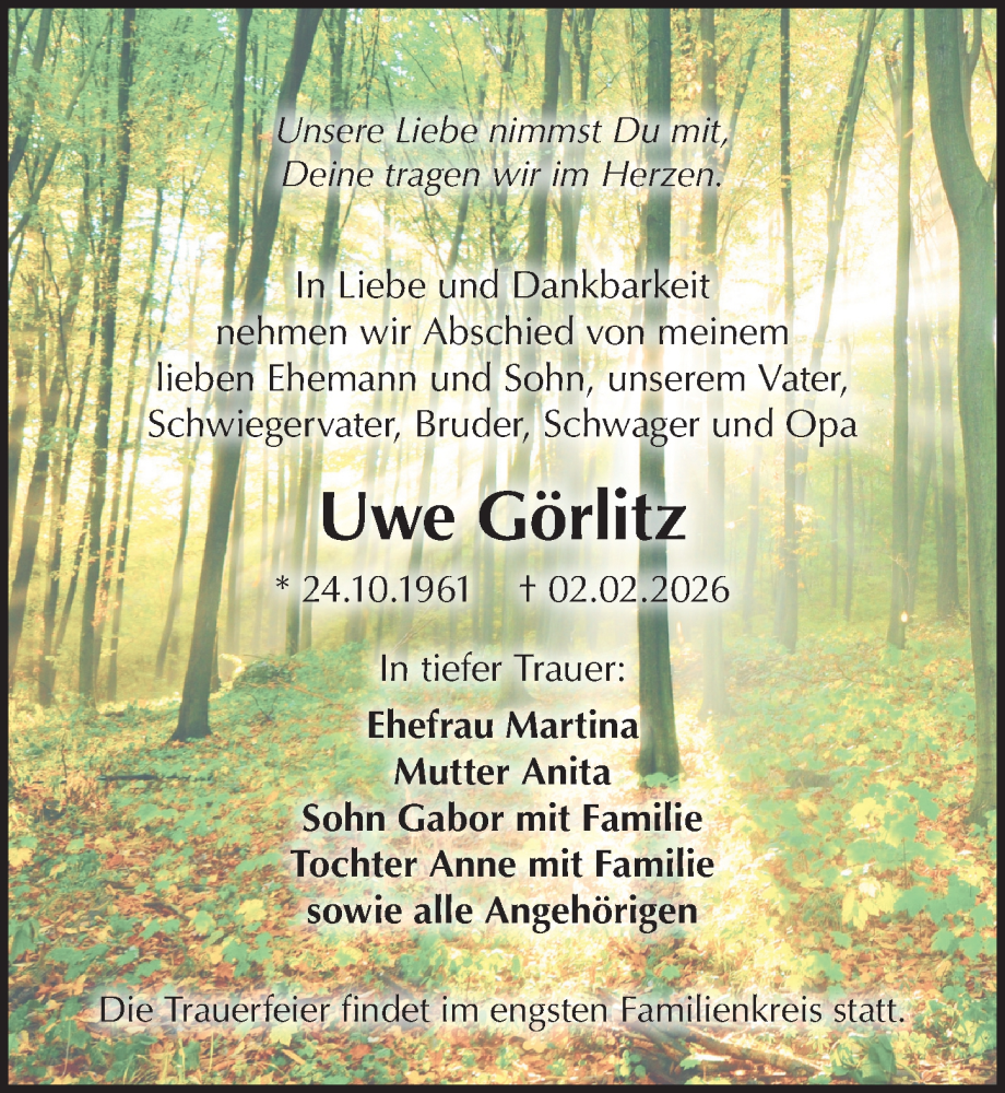 Hier finden Sie alle Traueranzeigen aus der Zeitung, die bisher für Uwe Görlitz erschienen sind. Weitere Traueranzeigen, die in der Zeitung erscheinen, werden hier ebenfalls aufgelistet