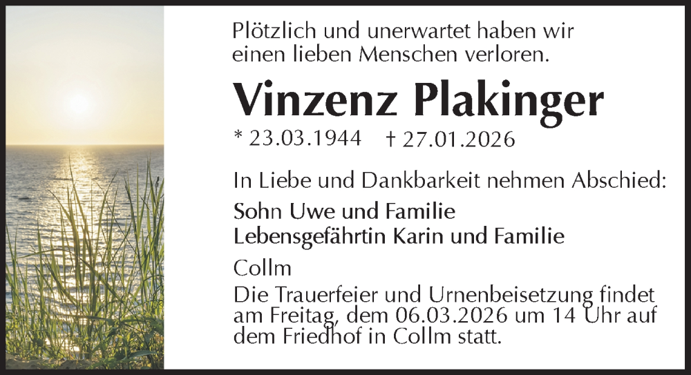 Hier finden Sie alle Traueranzeigen aus der Zeitung, die bisher für Vinzenz Plakinger erschienen sind. Weitere Traueranzeigen, die in der Zeitung erscheinen, werden hier ebenfalls aufgelistet