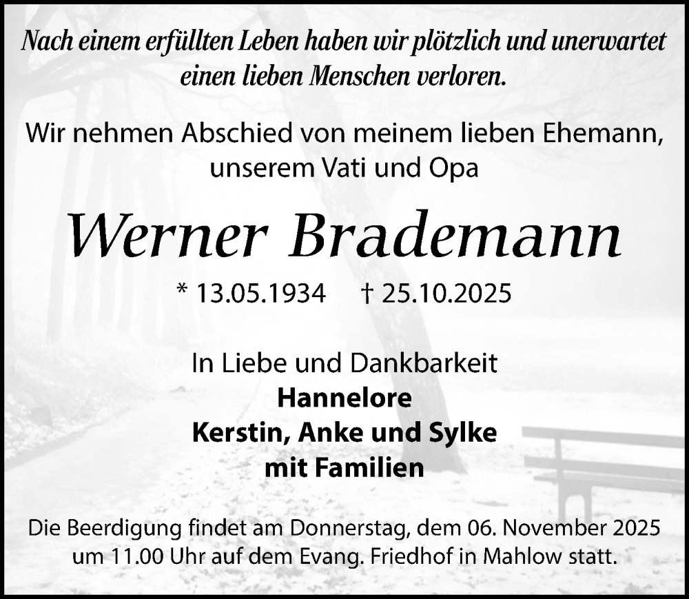 Hier finden Sie alle Traueranzeigen aus der Zeitung, die bisher für Werner Brademann erschienen sind. Weitere Traueranzeigen, die in der Zeitung erscheinen, werden hier ebenfalls aufgelistet