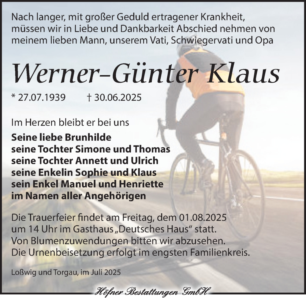 Hier finden Sie alle Traueranzeigen aus der Zeitung, die bisher für Werner-Günter Klaus erschienen sind. Weitere Traueranzeigen, die in der Zeitung erscheinen, werden hier ebenfalls aufgelistet