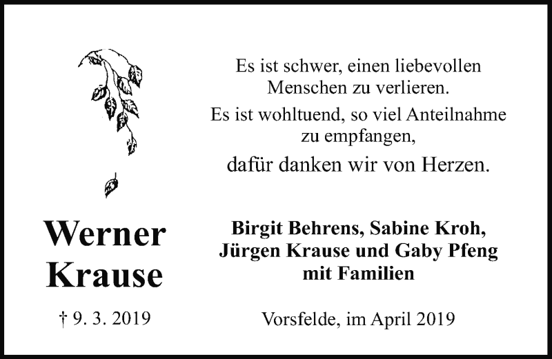 Hier finden Sie alle Traueranzeigen aus der Zeitung, die bisher für Werner Krause erschienen sind. Weitere Traueranzeigen, die in der Zeitung erscheinen, werden hier ebenfalls aufgelistet