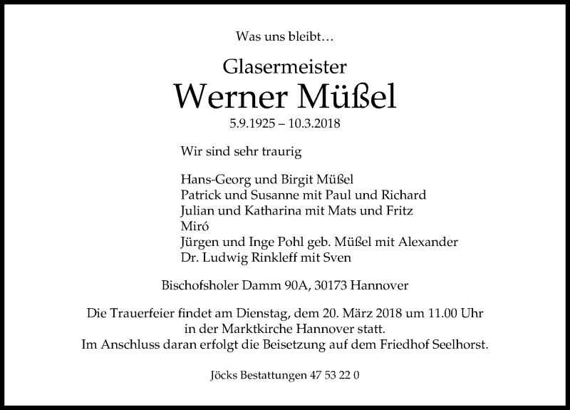 Hier finden Sie alle Traueranzeigen aus der Zeitung, die bisher für Werner Müßel erschienen sind. Weitere Traueranzeigen, die in der Zeitung erscheinen, werden hier ebenfalls aufgelistet