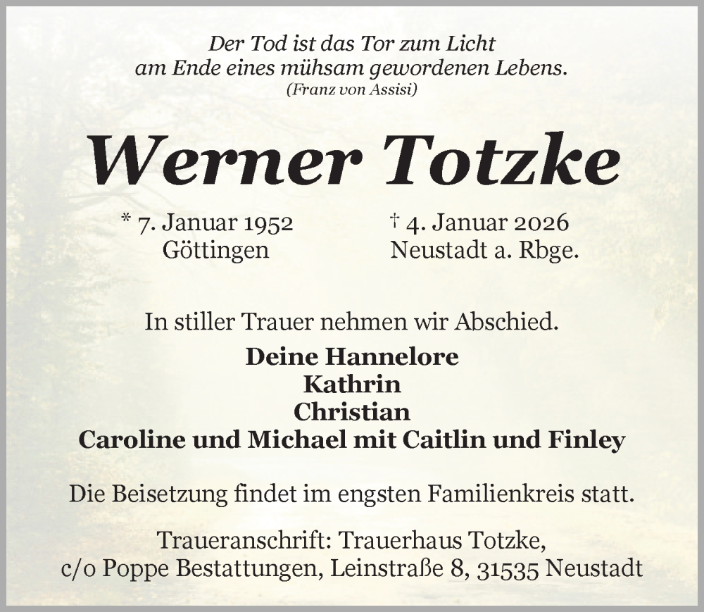 Hier finden Sie alle Traueranzeigen aus der Zeitung, die bisher für Werner Totzke erschienen sind. Weitere Traueranzeigen, die in der Zeitung erscheinen, werden hier ebenfalls aufgelistet