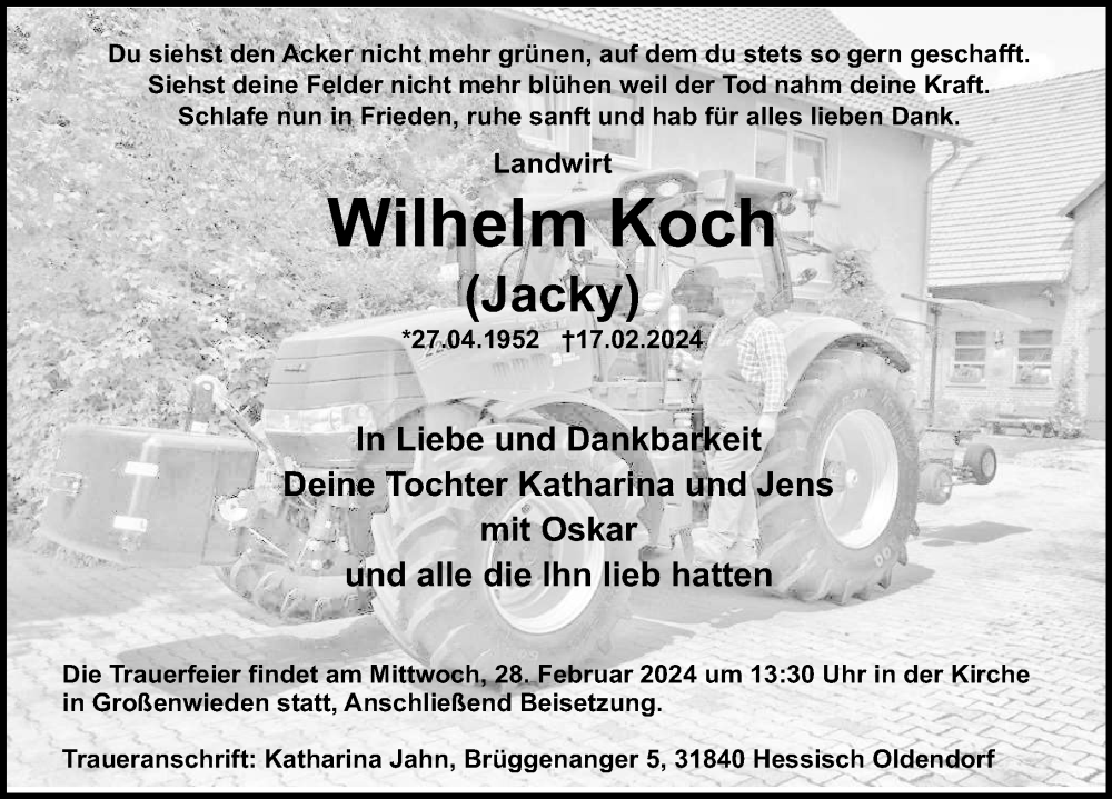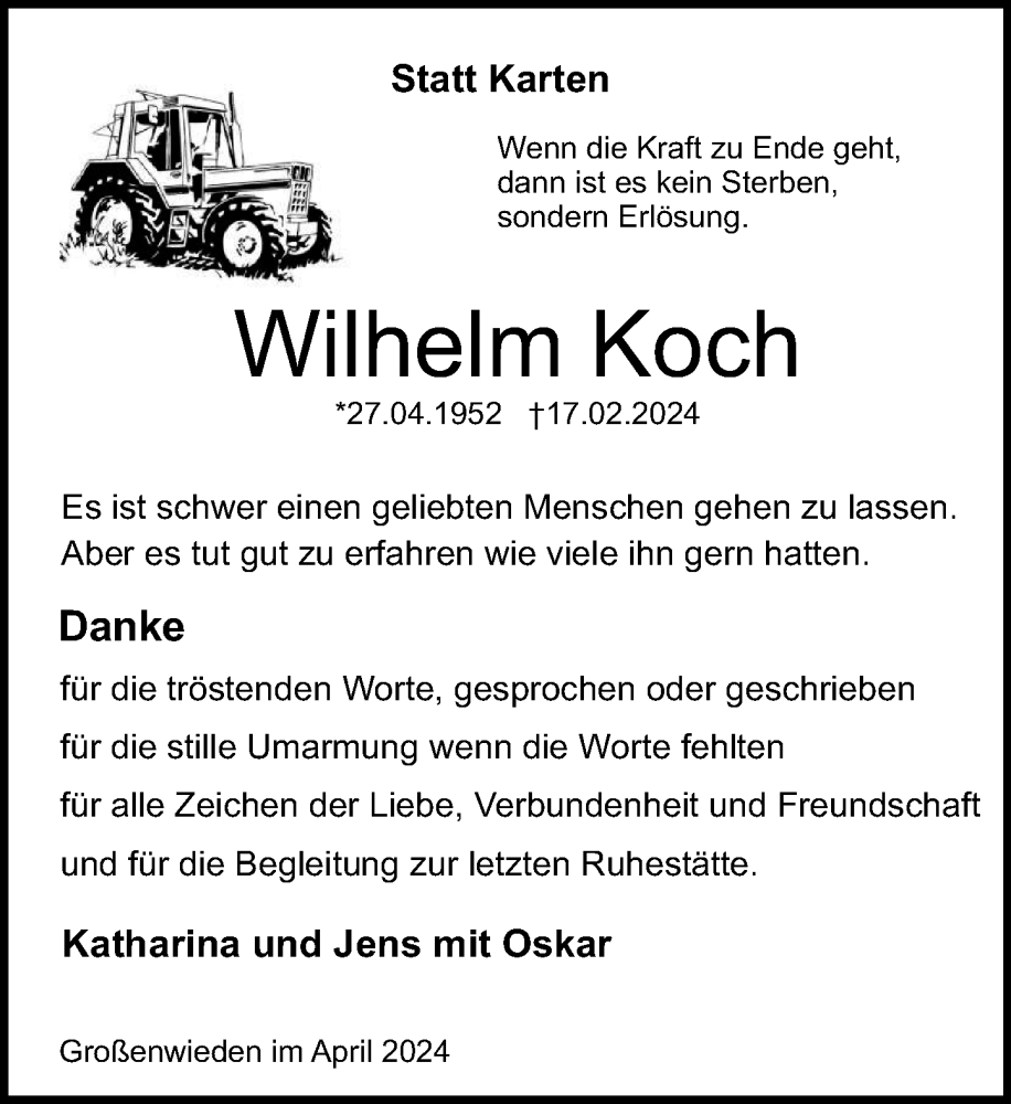 Hier finden Sie alle Traueranzeigen aus der Zeitung, die bisher für Wilhelm Koch erschienen sind. Weitere Traueranzeigen, die in der Zeitung erscheinen, werden hier ebenfalls aufgelistet