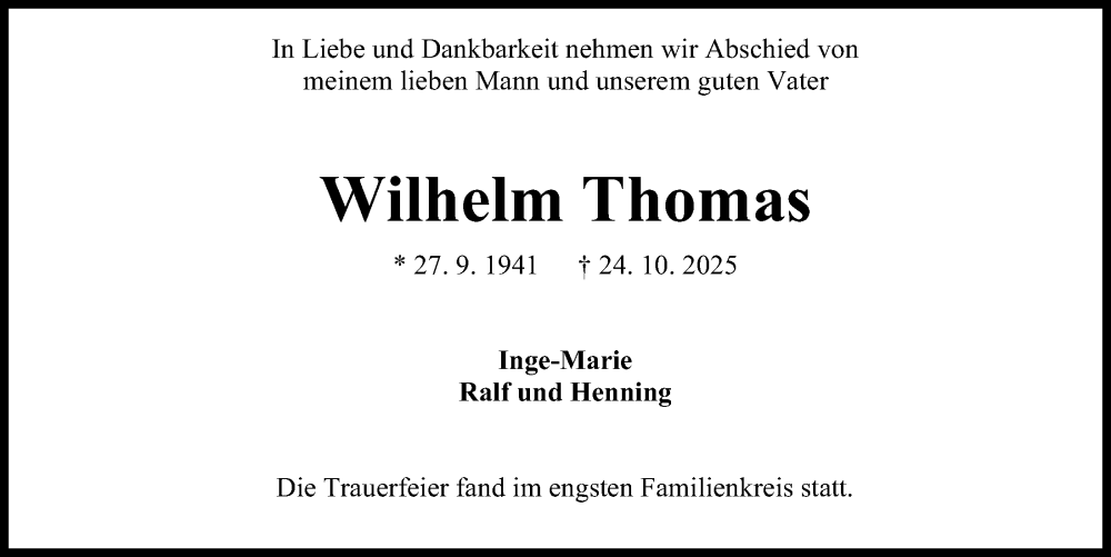 Hier finden Sie alle Traueranzeigen aus der Zeitung, die bisher für Wilhelm Thomas erschienen sind. Weitere Traueranzeigen, die in der Zeitung erscheinen, werden hier ebenfalls aufgelistet