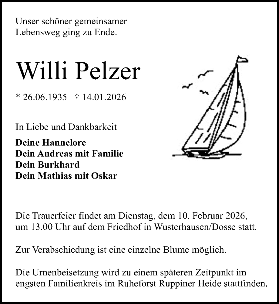 Hier finden Sie alle Traueranzeigen aus der Zeitung, die bisher für Willi Pelzer erschienen sind. Weitere Traueranzeigen, die in der Zeitung erscheinen, werden hier ebenfalls aufgelistet