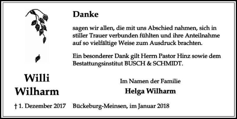 Hier finden Sie alle Traueranzeigen aus der Zeitung, die bisher für Willi Wilharm erschienen sind. Weitere Traueranzeigen, die in der Zeitung erscheinen, werden hier ebenfalls aufgelistet