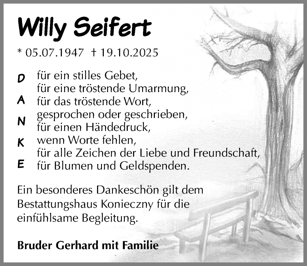 Hier finden Sie alle Traueranzeigen aus der Zeitung, die bisher für Willy Seifert erschienen sind. Weitere Traueranzeigen, die in der Zeitung erscheinen, werden hier ebenfalls aufgelistet