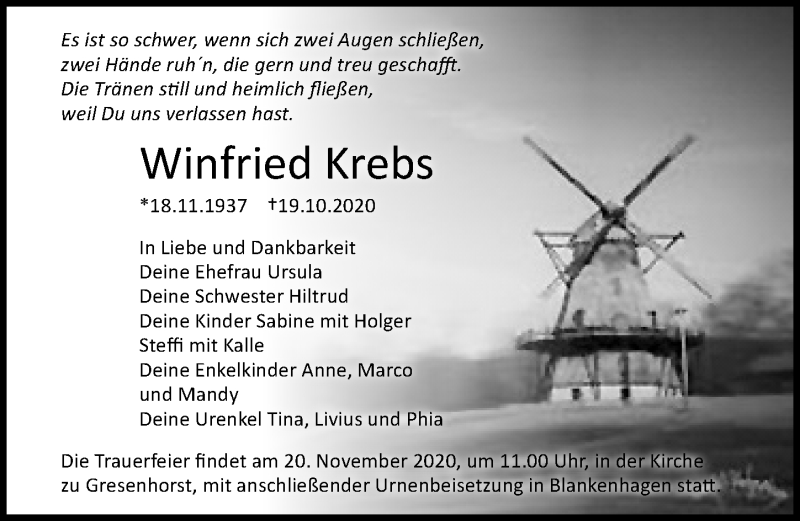 Hier finden Sie alle Traueranzeigen aus der Zeitung, die bisher für Winfried Krebs erschienen sind. Weitere Traueranzeigen, die in der Zeitung erscheinen, werden hier ebenfalls aufgelistet