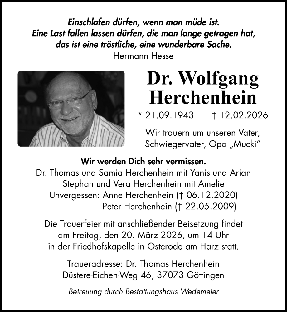 Hier finden Sie alle Traueranzeigen aus der Zeitung, die bisher für Wolfgang Herchenhein erschienen sind. Weitere Traueranzeigen, die in der Zeitung erscheinen, werden hier ebenfalls aufgelistet